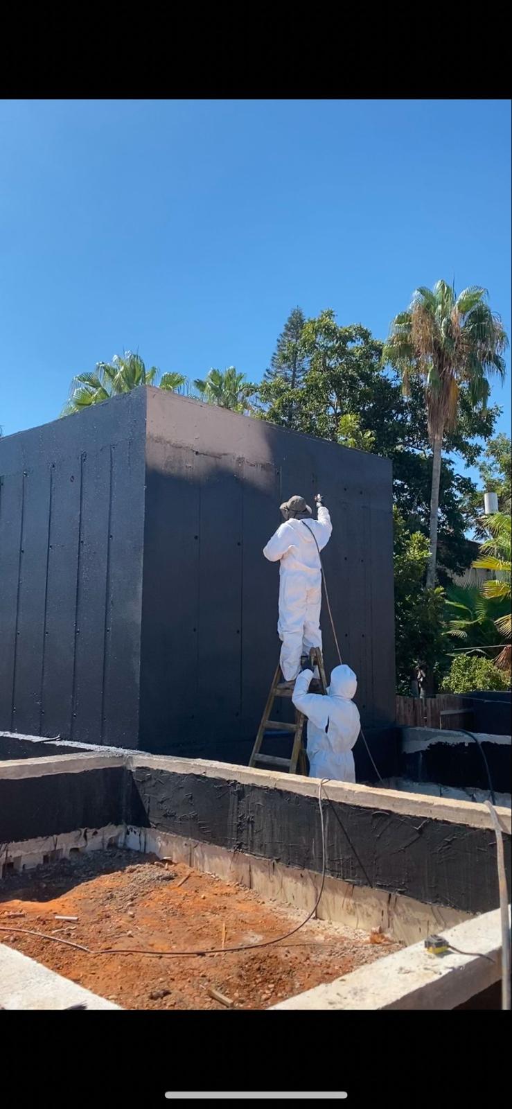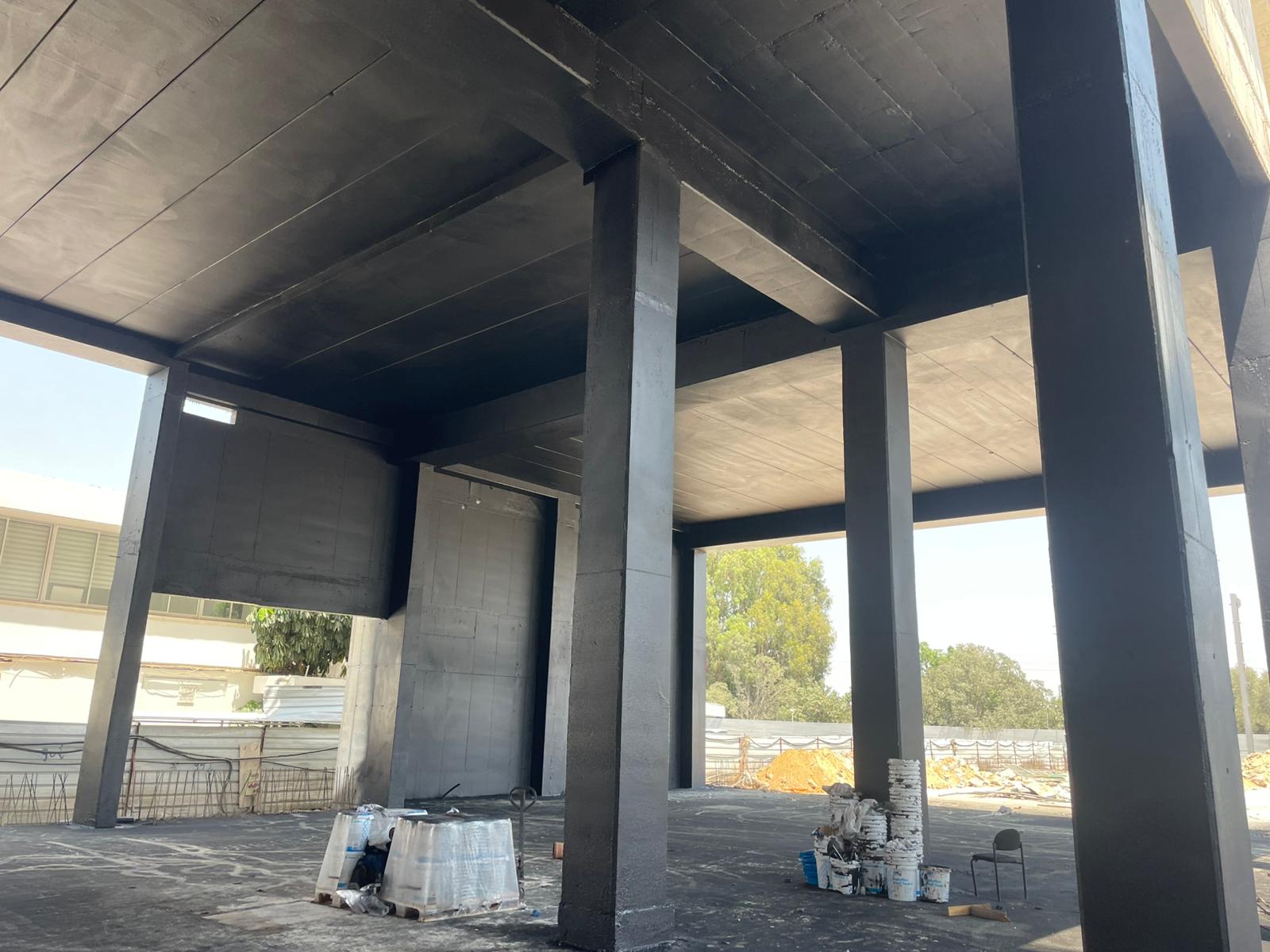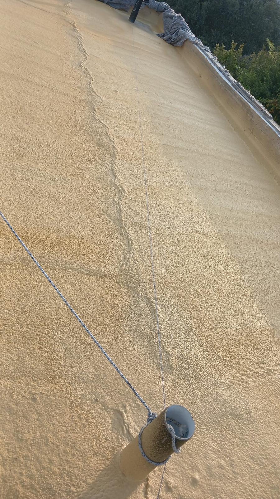 ביצוע התזת פוליאוריטן מוקצף לאחר ביצוע גמר השלד על מנת לבודד את הגג/קירות מפני חום וקור .